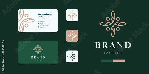 circular leaf elegant logo and business card template
