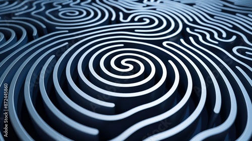 Circular maze pattern with varying line thickness and overlapping paths, perfect for creating intricate and engaging backgrounds. , Minimalism,