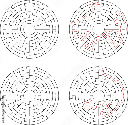Circular Maze Puzzle Solution With One Complete And One Incomplete Route