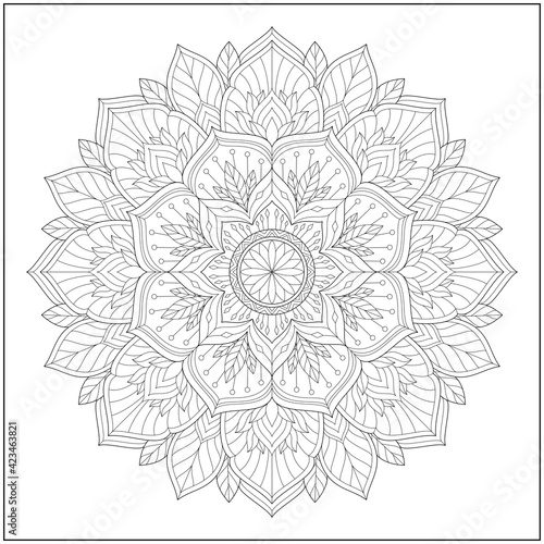 Circular pattern in form of mandala for learning and education. Coloring page illustration for adults and children. Outline style, black and white drawing.