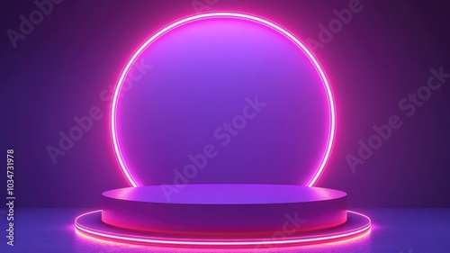 Circular Platform with Neon Lights and Purple Background