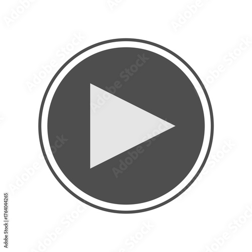 Circular Play Button Vector Icon: Monochrome Gray Media Control Symbol with Triangle for Video, Audio, Web UI/UX, and Digital Interface Applications