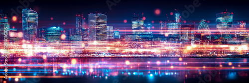 City Lights at Night: A mesmerizing skyline reflected on water, capturing urban beauty in dark, perfect for futuristic projects