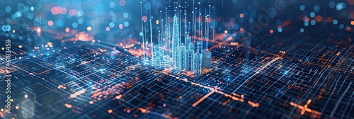 City made of digital data - virtual reality metaverse skyscrapers in downtown smart city concept