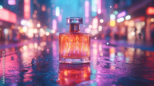 City night perfume bottle reflection ad