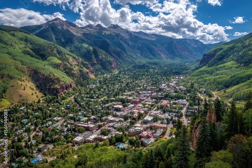 City Of Aspen Colorado. Aerial View of Telluride Colorado Ski Town in Summer