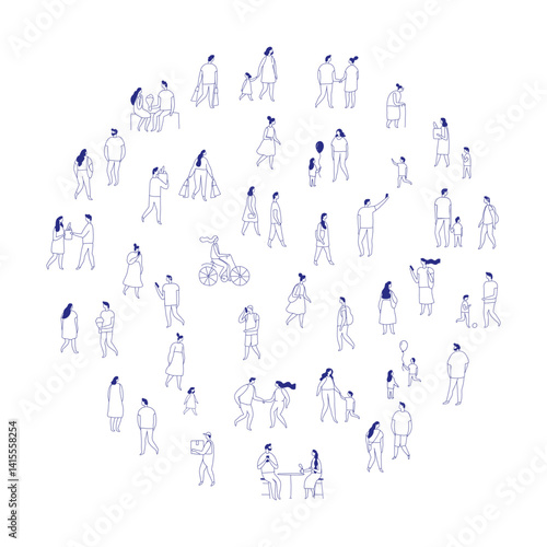 City People Crowd. Line art people big bundle isolated on white. Hand drawn People vector set. Male and female flat characters set