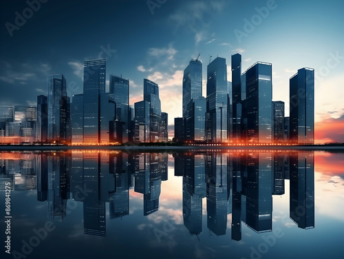 City square and skyline with modern buildings scenery, Aerial view of a business city and commercial area building, high rise building for business environment