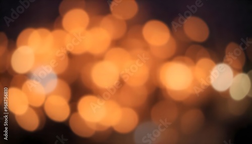 City street at night, with blurred lights reflecting on a wet pavement. Blurred background with soft warm-toned bokeh-light