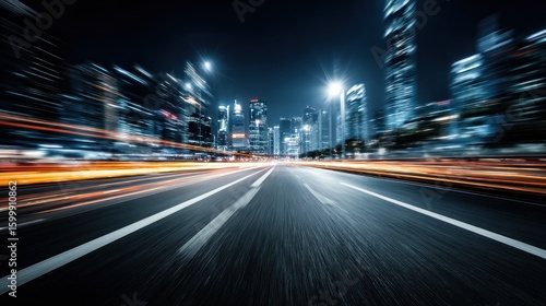 City street at night with motion blur.