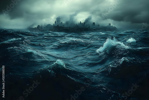 City Submerged By Powerful Stormy Waves