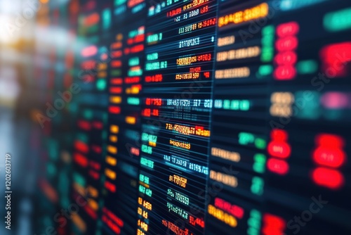 Cityscape backdrop, stock market data screen displays fluctuating numbers