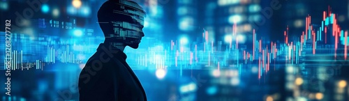 Cityscape finance professional observing data trends