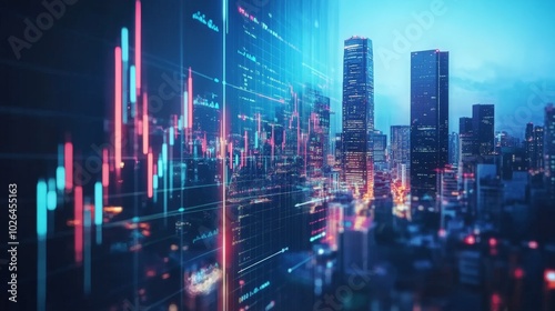 Cityscape with Overlaid Stock Market Data