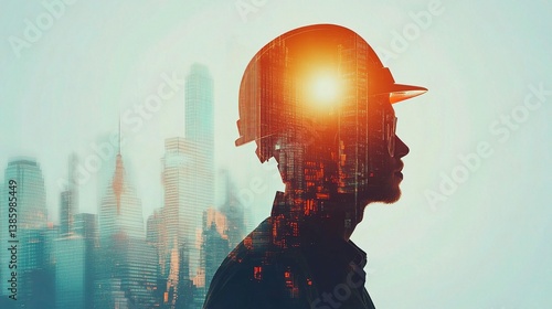 Civil Engineer Portrait with Hardhat and Cityscape Background