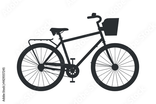 Classic Bicycle Silhouette Vector With Basket And Rack For Lifestyle And Transportation Design Elements