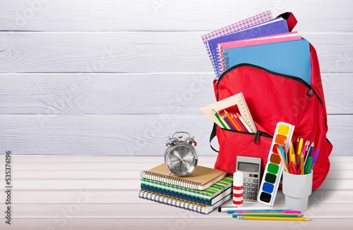 Classic colored school backpack with supplies