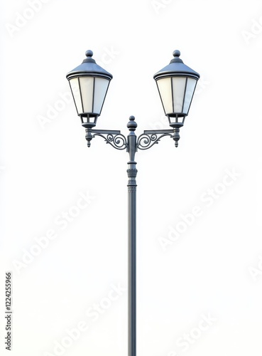 Classic double lamp post isolated on white.