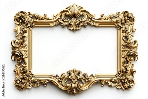 Classic golden baroque frame with ornate floral details, creating a luxurious and elegant atmosphere on a clean white wall