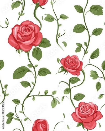 Classic red roses with soft petals creating a timeless floral pattern that evokes romance and natural beauty
