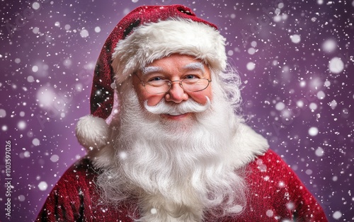 classic santa close-up portrait christmas new year purple background