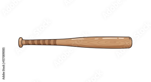 Classic Wooden Baseball Bat Cartoon Illustration Isolated on White Background - Sports Equipment for Baseball Game and Play