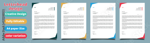 Clean and professional corporate company business letterhead template design with color variation bundle