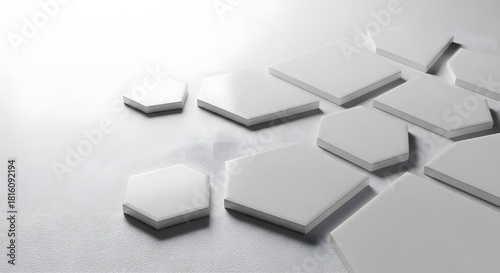 Clean geometric white shapes scattered on textured gray surface