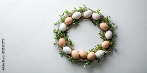 Clean Minimalist Egg Wreath Flat Lay Stock Photo - Easter Spring Decoration