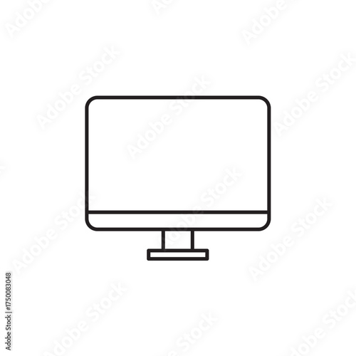 Clean Outline Desktop Monitor Icon with Pedestal Stand: Vector Line Art Symbol for Technology, Web Design, Blank Screen, and Digital Workspace Concepts.