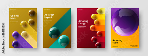 Clean poster vector design layout bundle. Geometric realistic balls magazine cover concept collection.