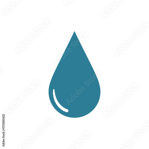 Clean Solid Blue Water Drop Icon with Shine: Vector Symbol for Hydration, Purity, Environment, Plumbing, Rain, and Health Concepts.