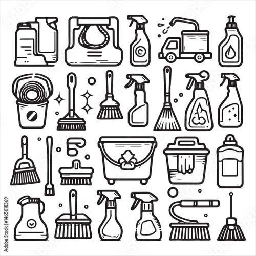 cleaning field elements vector clip art collection, simple editable line style