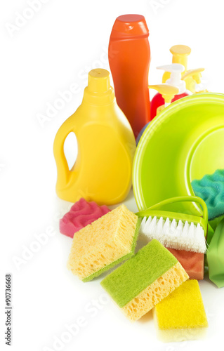 Cleaning items on white