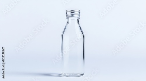 Clear glass bottle with a silver lid