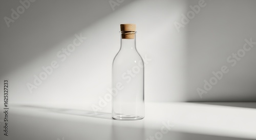 Clear glass bottle with cork stopper mockup template for liquid storage and product presentation display