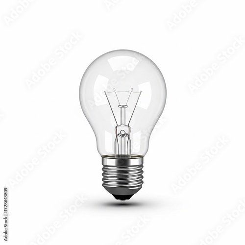 Clear Incandescent Light Bulb on White Background.