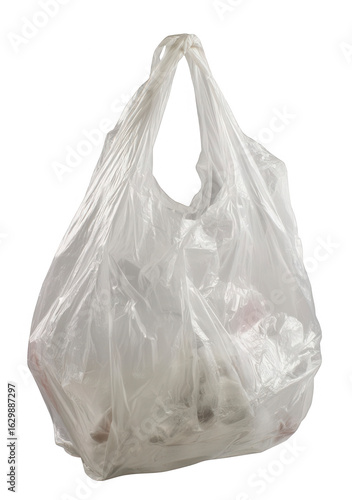 Clear plastic shopping bag, full