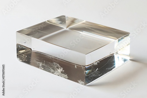 Clear Rectangular Glass Block on White Background
