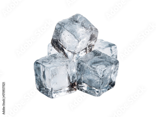 Clear transparent frozen cubes stacked against black image