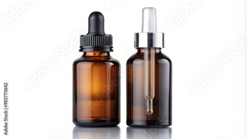 Clinical dark glass night serum container with pipette dispenser isolated on white background