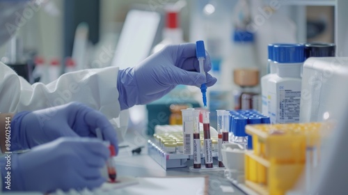 Clinical Lab Blood Test Procedure with Nurse Drawing Blood for Lipid Profile Analysis