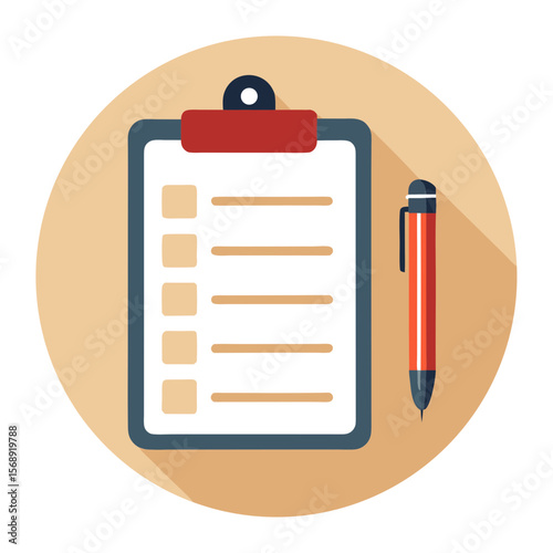 Clipboard and Pen Vector Graphic Simple Flat Design Icon