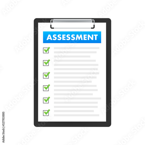 Clipboard checklist with assessment. Assessment of users experience of services. Vector stock illustration.