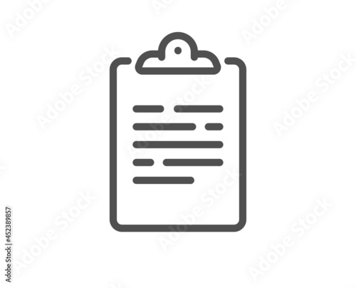 Clipboard document line icon. Agreement file sign. Survey record symbol. Quality design element. Linear style clipboard icon. Editable stroke. Vector