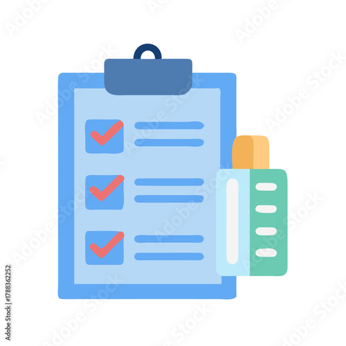 Clipboard with checklist and test tube, project status illustration