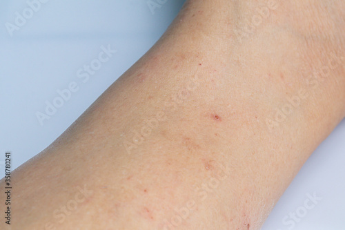 Close up Atopic dermatitis on leg(AD), also known as Atopic eczema.Skin disease concept.