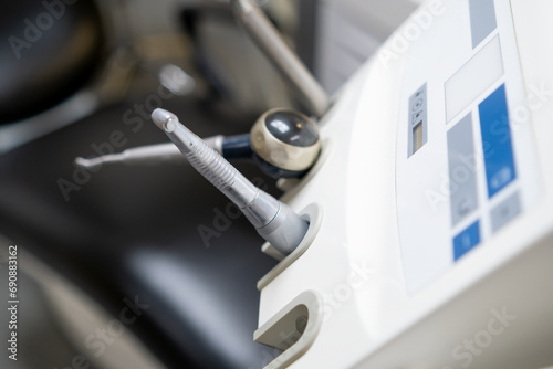 Close up dentist tools, burnishers, different dental instruments in a dentists office