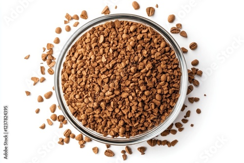 Close up instant coffee granules soluble coffee isolated white background