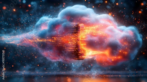 Close Up Macro of Cloud Storage Device Emitting Digital Data Streams in High-Tech Setting